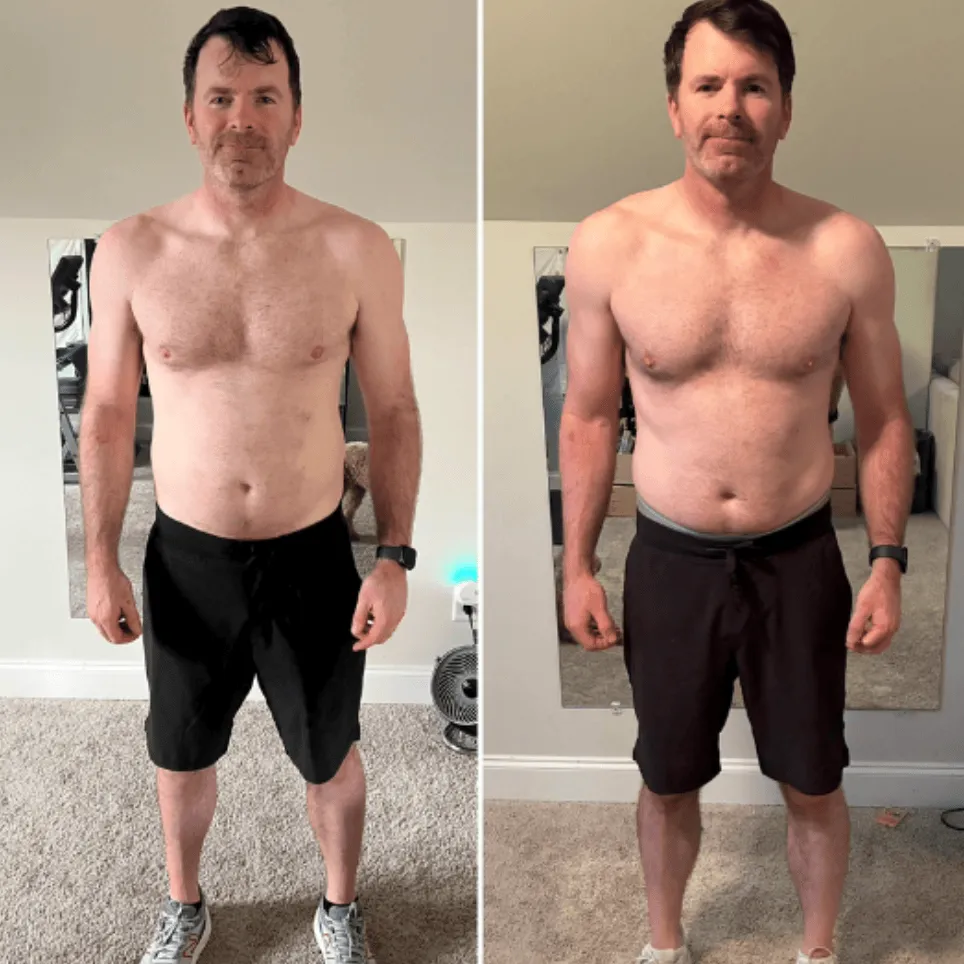 Chad is down 39 pounds and added 11 pounds of muscle after 12 months!
